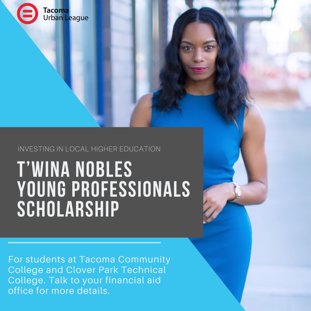 In the spirit of the National Urban League Young Professionals, this scholarship is intended to help prepare a new generation of young leaders to take the mantle of leadership of the civil rights movement and will be awarded to a student of color enrolled at Clover Park Technical College (CPTC) and Tacoma Community College (TCC), between the ages of 20-40, and interested in taking an active leadership role in their local community.